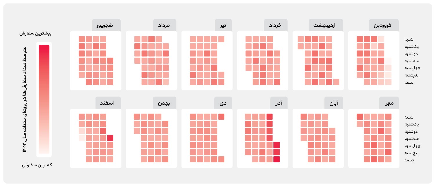 یکشنبه ها در دیجی کالا پرفروشترین روز است. در بین ساعات روز هم بیشترین خریدها در ساعت ۲۳ انجام میشود .