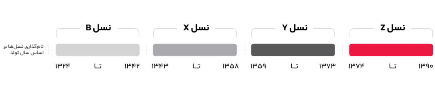 تا چند سال پیش، نسلهای سنی در ایران با عبارات سادهای مانند نسل پیش از انقلاب و بعد از انقلاب تعریف میشدند. اما اخیراً واژهها و عنوانهای جدیدی مانند نسل Y و نسل Z برای توصیف گروههای سنی مختلف به کار میروند. هر کدام از این عنوانها به یک گروه سنی خاص اشاره دارند و حتی در رفتار خرید نیز ویژگیهای منحصر به فرد خود را دارند.