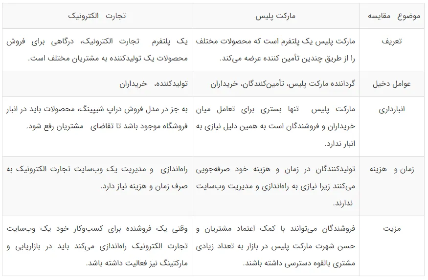 تفاوت میان تجارت الکترونیک و مارکت پلیس