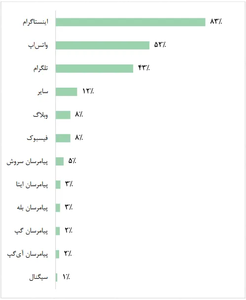 78 درصد از واحدهای تجارت الکترونیکی برای فروش و ارائه خدمات، علاوهبر وبسایت از شبکههای اجتماعی نیز استفاده میکنند. میزان استفاده آنها از پیامرسانها و اپلیکیشن موبایل (علاوهبر وبسایت) به ترتیب 34 و 28 درصد بوده است. سهم هر یک از روشهای فروش کالا و ارائه خدمات به صورت زیر است.