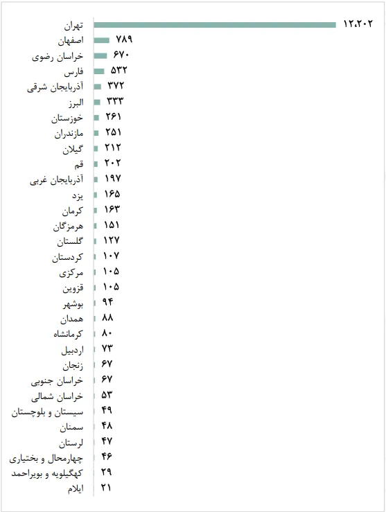 پراکندگی جغرافیایی واحدهای تجارت الکترونیکی دارای نماد اعتماد در سال 1399 در نمودار زیر قابل مشاهده است.