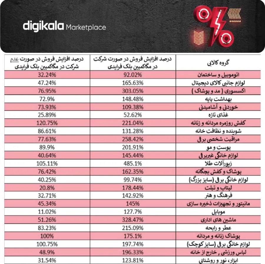پتانسیل فروش در گروه های کالایی مختلف در بلک فرایدی دیجیکالا