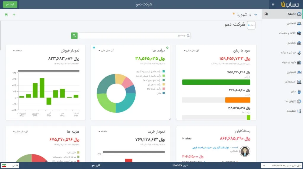 حسابان وب یکی از بهترین نرم افزار حسابداری آنلاین در ایران است که دمویی یک ماهه به کاربران ارائه میدهد. از امکانات این نرم افزار میتوان به موارد زیر اشاره کرد: