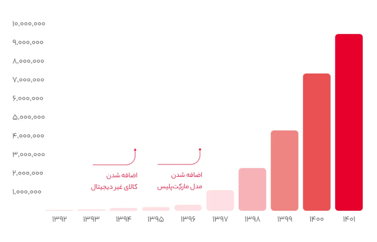 - میزان تنوع کالایی: ۹.۷ میلیون