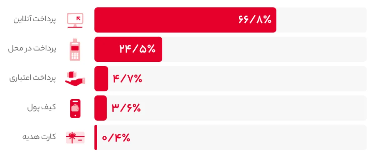 طبق این گزارش سهم خردهفروشی آنلاین در مقایسه با کل خردهفروشی در ایران حدود ۴ درصد است. در حالیکه در سایر کشورها همچون انگلستان، دانمارک، ترکیه، آمریکا، فنلاند و... خردهفروشی از طریق اینترنت سهم بیشتری را به خود اختصاص میدهد.