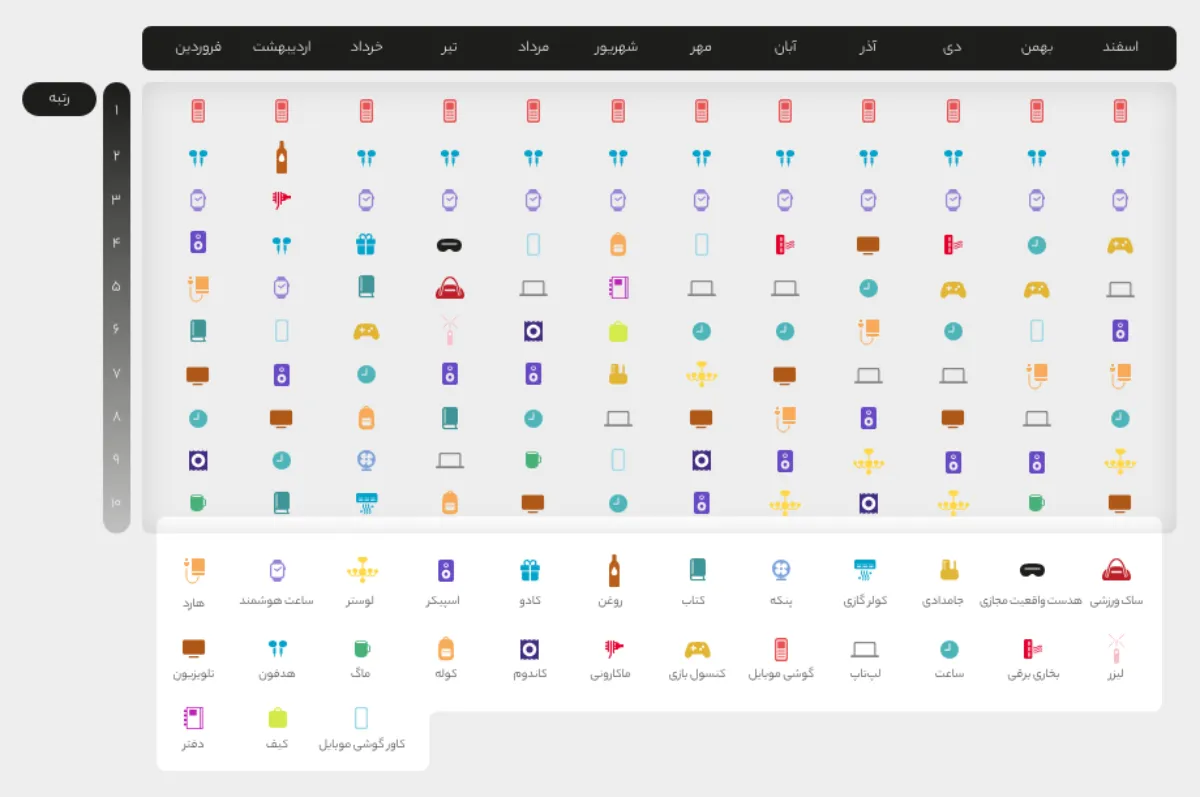 کالاهای پرجست و جو در هر ماه