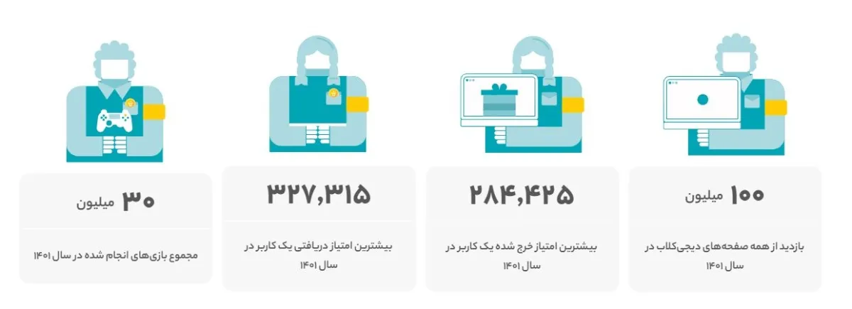 در گزارش سال ۱۴۰۱ دیجی کالا در مورد بخش دیجی کلاب نیز صحبت شده است. در این قسمت کاربران میتوانند پس از خرید کالا، ثبت نظرات و اقداماتی از این قبیل یکسری امتیازها کسب کنند. سپس این امتیازات امکان شرکت در بازیها و قرعهکشیهای هفتگی و فصلی را برای مشتریان فراهم میآورند.