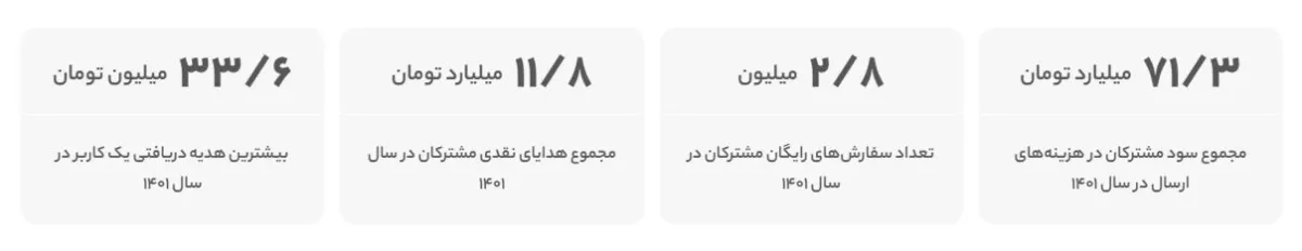 در سال ۱۴۰۱ تعداد بیشتری فروشنده با این مجموعه همکاری کردهاند. گزارشات حاکی از آن هستند که تعداد فروشندگان حدود ۲۳.۶ درصد رشد داشته و به ۳۰۸ هزار رسیده است. آمار جالبی نیز در مورد میزان فروش درج شده که نشان میدهد در طول یک سال گذشته فروشندگان به طور متوسط سی میلیون تومان در طول ماه کالا فروختهاند. همچنین در این بین یکی از فروشندگان موفق شده که با رکورد ۲۴۴ میلیارد تومان بیشترین میزان فروش را به خود اختصاص دهد.